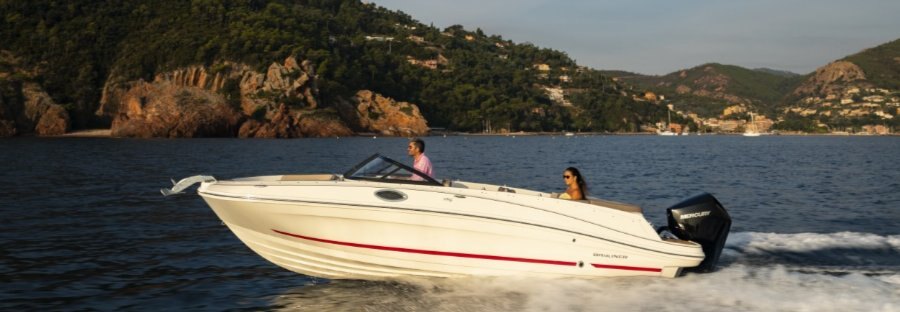 1. Available Water Sports or Fishing Options let you customize the VR6 to suit your family's needs. 2. BeamForward™ design with high gunnels creates more passenger space, under-seat storage and safety 3. Enclosed changing room with optional port potty provides convenience normally found on larger boats 4. Exceptionally roomy cockpit thanks to our exclusive AftAdvantage™ design 5. Spacious cockpit seating converts to inviting U-lounge with addition of optional filler cushion 6. Standard integrated swim platform and optional platform extension are positioned further aft than comparable models adding interior space while providing the ideal staging area for water sports.