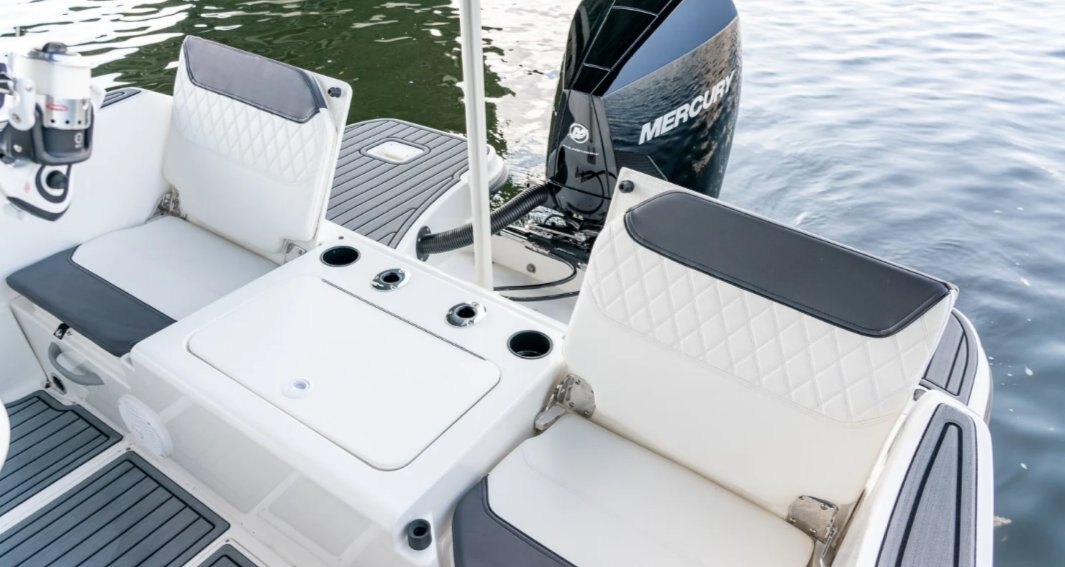 1. Self-bailing cockpit keeps cockpit dry and makes cleanup easier 2. Spacious layout with fore and aft casting decks, ample storage and all the fishing features you need 3. Reliable Mercury outboard power up to 300-HP, and sure, predictable handling 4. 9 Cupholders 5. Gunwale Rod Storage