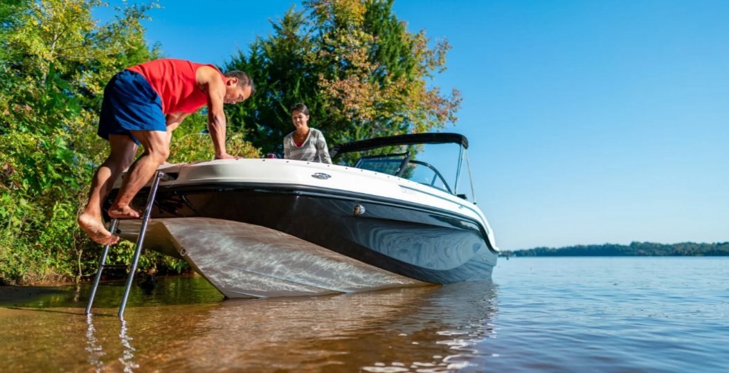 1. 3 interior floorplan options for unrivaled customization. 2. Extended LOA and deep gunnels for a safe, dry ride. 3. Exterior hull sculpting and shear lines for added style. 4. Transitional transom seating creates ample sun lounging area.