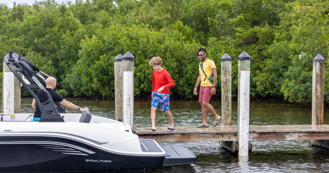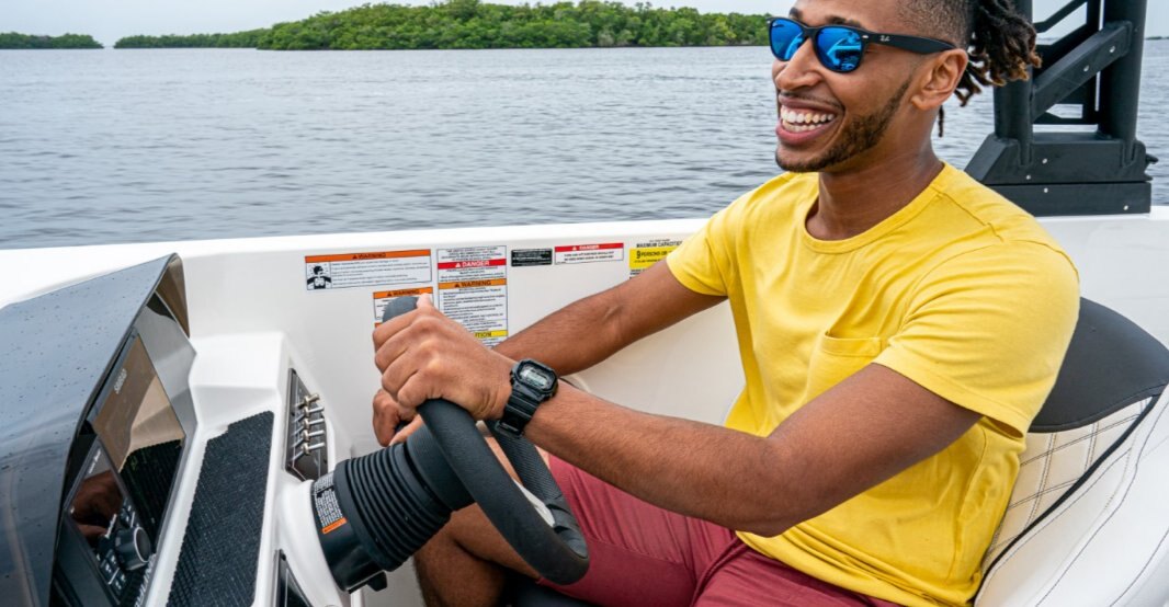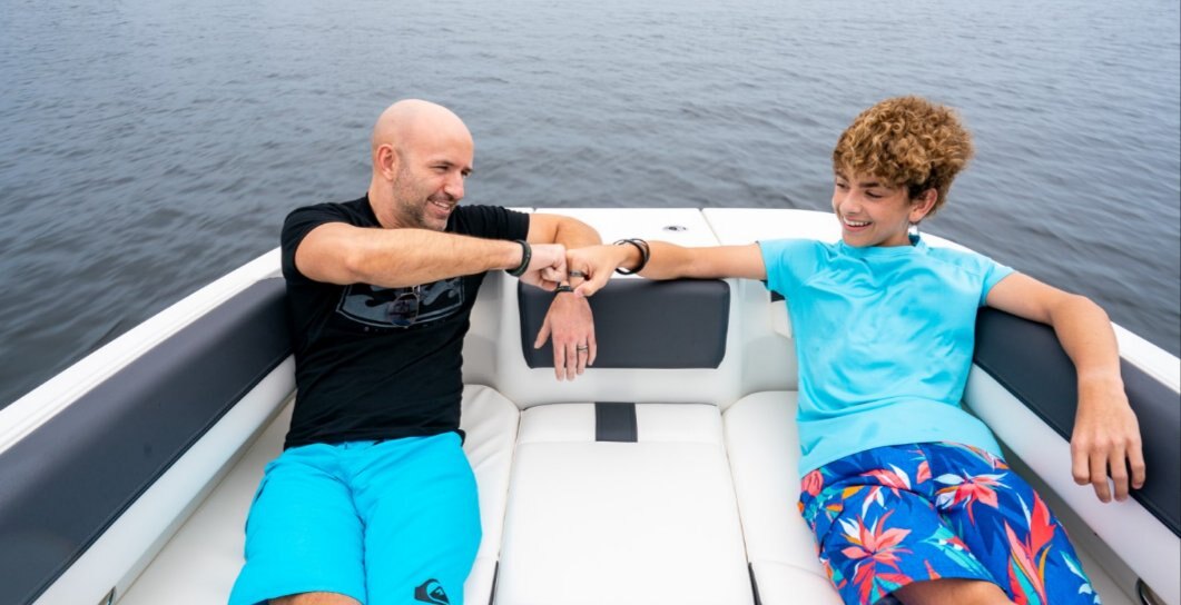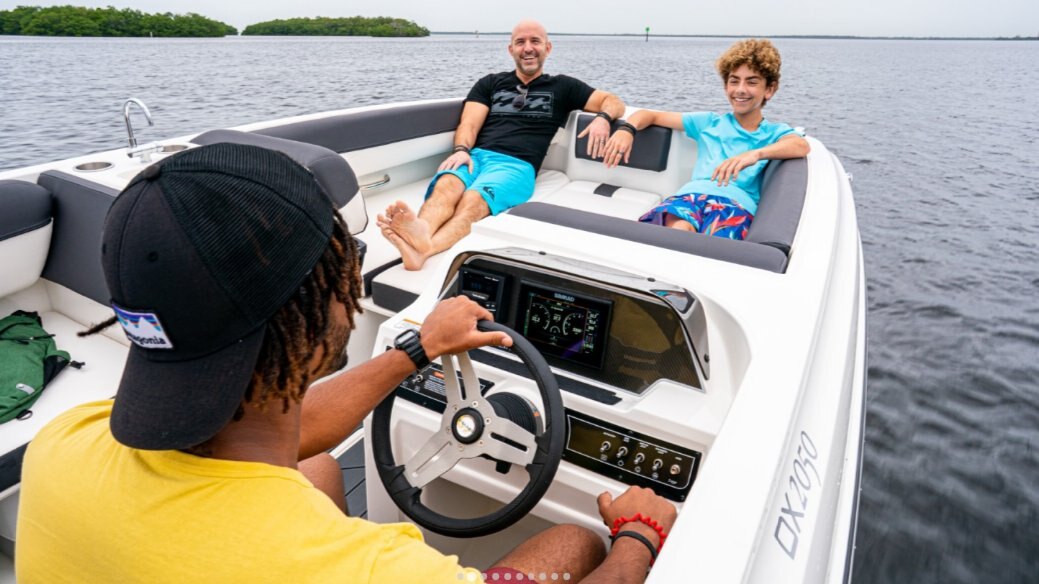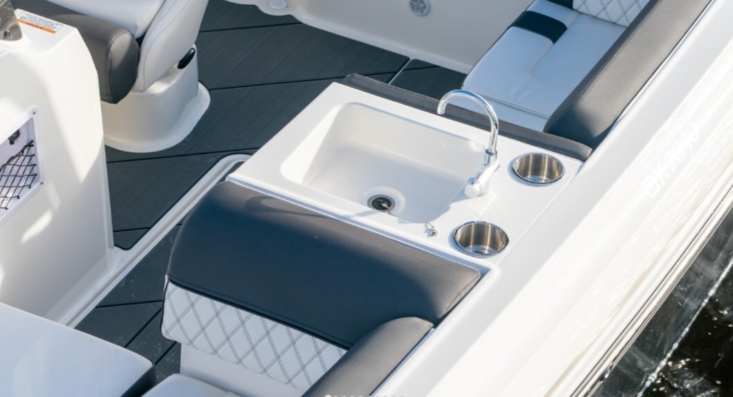 1. 3 interior floorplan options for unrivaled customization. 2. Transitional transom seating creates ample sun lounging area. 3. Exterior hull sculpting and shear lines for added style. 4. Extended LOA and deep gunnels for a safe, dry ride.