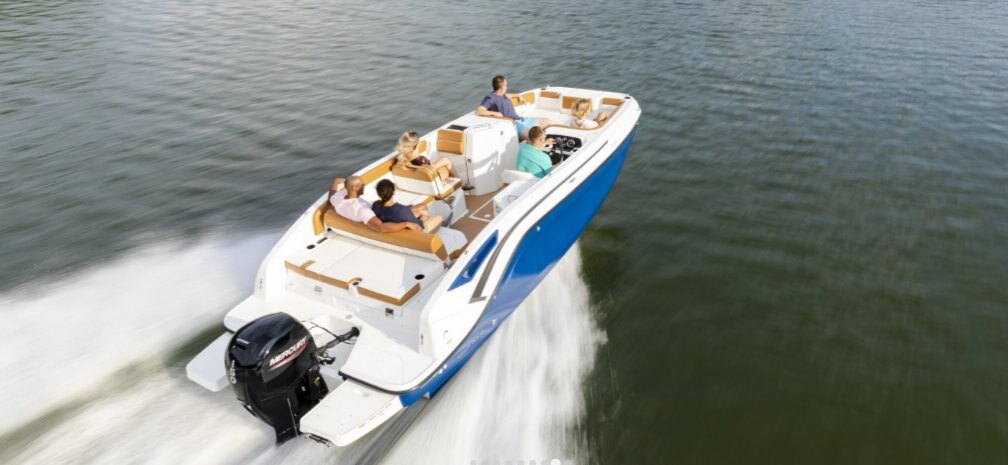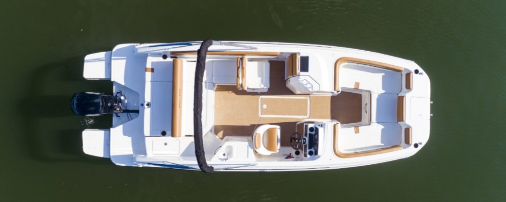 This family-friendly outboard model combines all the most popular aspects of the DX Series. The sleek exterior is complete with hull sculpting and stylish shear lines while the interior is loaded with all the comforts of home. The plush upholstery features quilting with black welt plus transitional cockpit and transom seating offer total lounging comfort while facing forward or aft. When underway the wider V-hull offers stability and a high freeboard keeps everyone safe and dry.