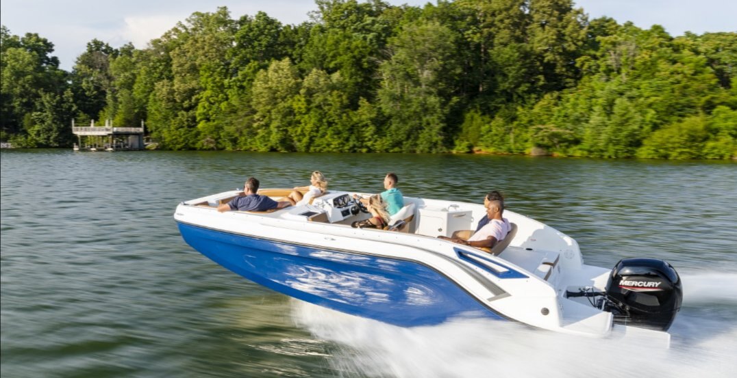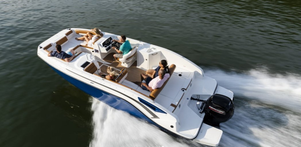 This family-friendly outboard model combines all the most popular aspects of the DX Series. The sleek exterior is complete with hull sculpting and stylish shear lines while the interior is loaded with all the comforts of home. The plush upholstery features quilting with black welt plus transitional cockpit and transom seating offer total lounging comfort while facing forward or aft. When underway the wider V-hull offers stability and a high freeboard keeps everyone safe and dry.