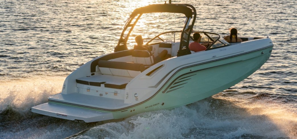 This family-friendly sterndrive model combines all the most popular aspects of the DX Series. The sleek exterior is complete with hull sculpting and stylish shear lines while the interior is loaded with all the comforts of home. The plush upholstery features quilting with black welt plus transitional cockpit and transom seating offer total lounging comfort while facing forward or aft. When underway the wider V-hull offers stability and a high freeboard keeps everyone safe and dry.