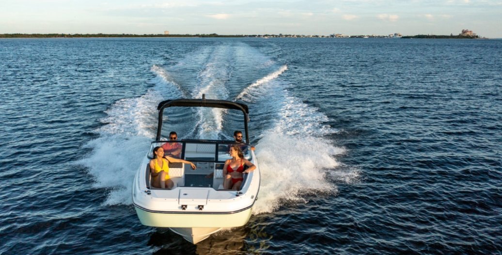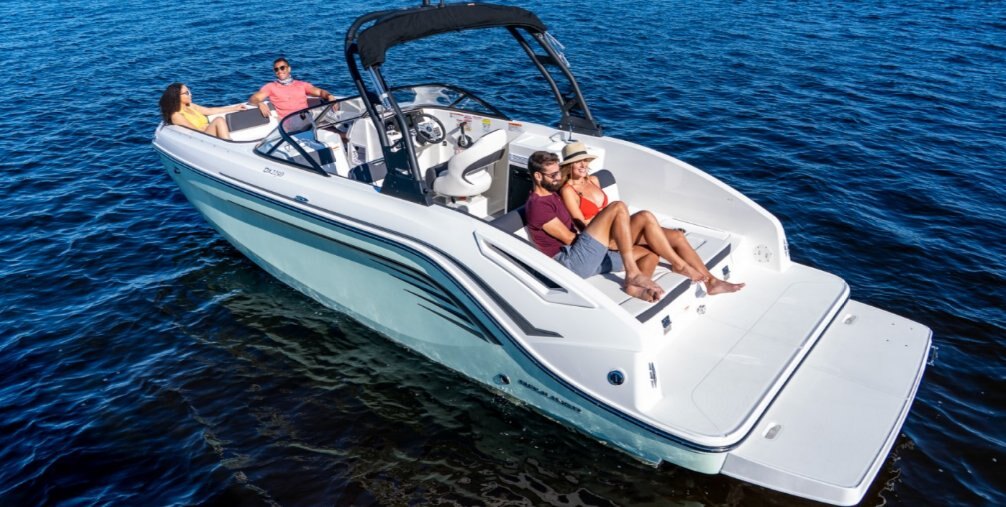 This family-friendly sterndrive model combines all the most popular aspects of the DX Series. The sleek exterior is complete with hull sculpting and stylish shear lines while the interior is loaded with all the comforts of home. The plush upholstery features quilting with black welt plus transitional cockpit and transom seating offer total lounging comfort while facing forward or aft. When underway the wider V-hull offers stability and a high freeboard keeps everyone safe and dry.