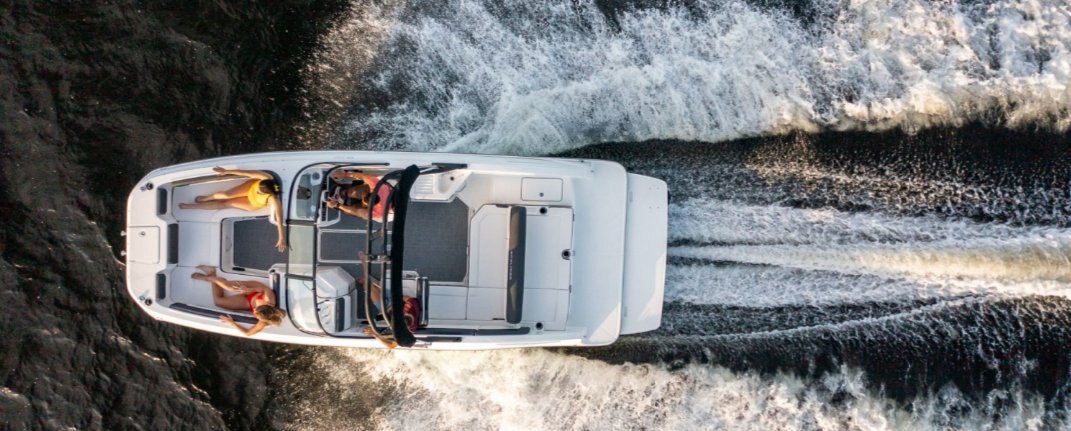 This family-friendly sterndrive model combines all the most popular aspects of the DX Series. The sleek exterior is complete with hull sculpting and stylish shear lines while the interior is loaded with all the comforts of home. The plush upholstery features quilting with black welt plus transitional cockpit and transom seating offer total lounging comfort while facing forward or aft. When underway the wider V-hull offers stability and a high freeboard keeps everyone safe and dry.