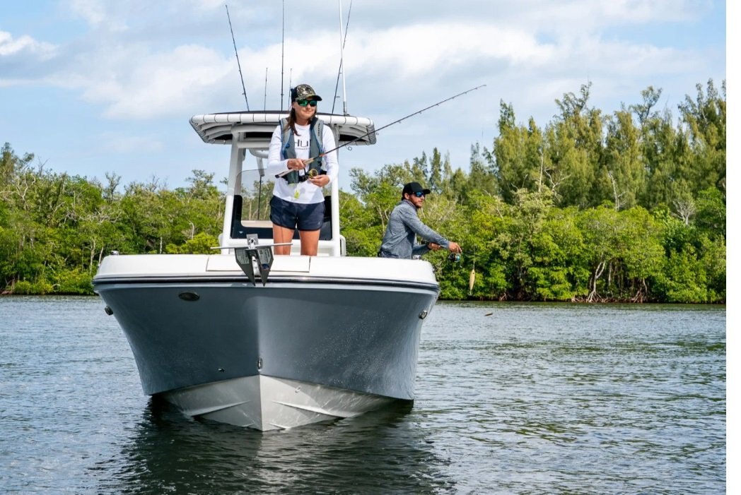 COCKPITSelf-Bailing Cockpit Raw Water Washdown Fuel Fill w/ Integrated Vent Waterproof 120-Watt AM/FM Stereo w/ Bluetooth Capability Leaning Post w/ Livewell Dual Batteries w/ Switch 1200 GPH Bilge Pump (Manual) Removable Bow Backrests and Cushions Fold-Away Rear Bench Seat Canvas T-Top w/ Rod Holders (4) |