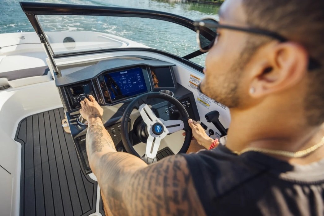 HELMLarge Lockable Port-Side Changing Room and Storage Compartment Multi-Function Gauges w/ Fog Resistant Glass Lenses: Fuel, Speedometer, Tachometer, Voltmeter 12V Accessory Outlet 12V Horn Side-Mounted Engine Controls w/ Trim & Tilt Switch in Handle Tilt Steering Custom Sport Steering Wheel |