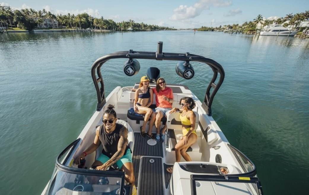 The largest model in our bowrider family, the VR6 is also all about space and unparalleled roominess. It combines Bayliner category-leading BeamForward design and our signature AftAdvantage concept which increases dry seating in the self-draining cockpit by adding the swim platform at the end of the running surface. This boat maximizes space and value like never before regardless of whether you choose outboard or sterndrive power. You will also find pleasant surprises like a lockable enclosed changing room (head optional) and aft-facing companion observer seat that is ideal for water sports and with the addition of a filler cushion creates a comfortable U-lounge that turns the whole aft section into an inviting gathering area.