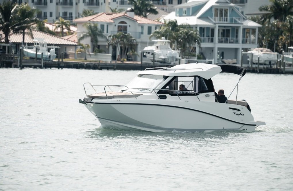 KEY FEATURESBow Roller Swim Ladder Navigation Lights Forward Line/Anchor Locker Self-Bailing Cockpit Rod Holders Hull side windows Led Courtesy Lights Cabin Standards: Berths (3) Storage below Berth Pilot Seats with Flip Bolster and Swivel Dinette Seat Configuration Berth Cushion/Filler Deck Hatch Galley - Sink with Tap Standard Premium Package includes: Bimini w/ complete enclosed canvas, Real Teak Cockpit Table, Port & Starboard Extended Swim Platforms, Fusion Stereo (4) Speakers, Cockpit Sun Lounge Optional Cabin Comfort Pack includes: Enclosed sea toilet with sink, Curtains, Refrigerator 51L |