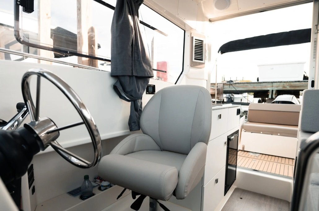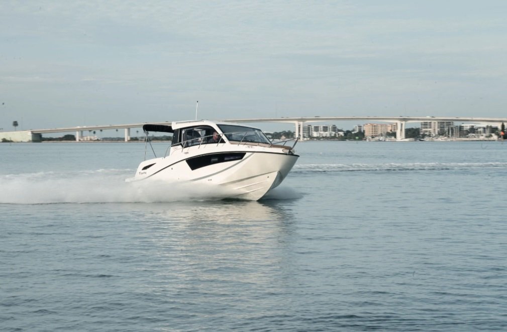 KEY FEATURESBow Roller Swim Ladder Navigation Lights Forward Line/Anchor Locker Self Bailing Cockpit Rod Holders Hull Side Windows Swim Platform LED Courtesy Lights Berths (4) Storage Below Berth Cabin Table Pilot Seats with Flip Bolster and Swivel Berth Cushion/Filler Dinette Seat Configuration Opening Portlights Cabin Lights Deck Hatch Standard Premium Package includes: Bimini w/ complete enclosed canvas, Port & Starboard Extended Swim Platforms, Fusion Stereo (6) Speakers, Cockpit Sun Lounge, Cockpit L-Lounge, Enclosed Head w/ sea toilet and port/starboard portlights, Hardtop Spreader Light, Shorepower, Trim Tabs, Port & Starboard Windshield Wiper w/ washer, Cockpit Table, Bow Thruster Optional Cabin Comfort Pack includes: Refrigerator 51L, Hardtop Roof Hatch, Foredeck & Hardtop Hatch Cover (roller surface: black/fly screen), Upper and lower cabin curtains, Interior Floor Carpet Sink with tap |