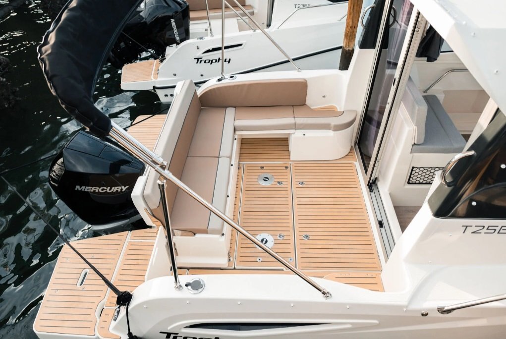 The sporty, spacious Trophy T25 Explorer is a boat that’s made for being on the water and makes every voyage an adventure. With room for nine people, the spacious dining area with galley makes those moments spent with family and friends, extra special. |