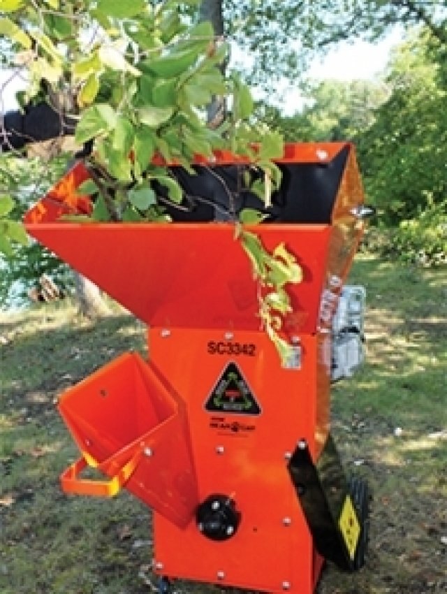 The SC3342 chipper/shredder is powered by a 342cc Briggs & Stratton OHV engine. The 27 lb. rotor operates at 3600 rpm at full throttle. Two reversible chipping blades and twelve reversible shredding knives provide the most efficient method of turning tree, yard and garden debris into nutrient rich, user ready product.