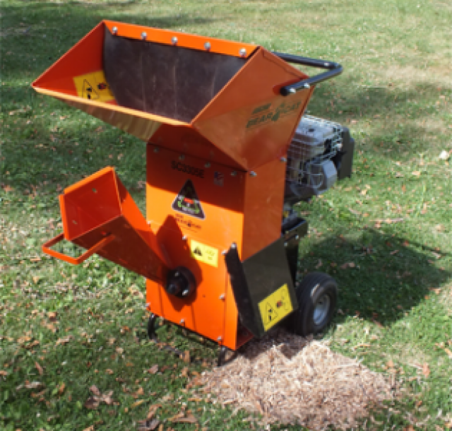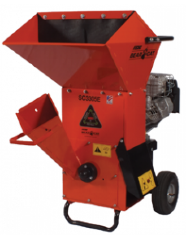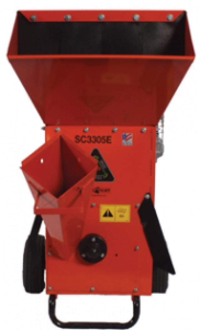 The SC3305E chipper/shredder is powered by an electric start 305cc Briggs & Stratton OHV engine. The 27 lb. rotor operates at 3600 rpm at full throttle. Two reversible chipping blades and twelve reversible shredding knives provide the most efficient method of turning tree, yard and garden debris into nutrient rich, user ready product.