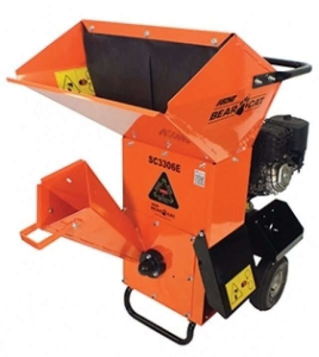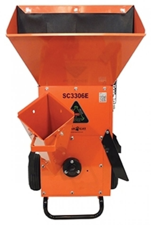 The SC3306 chipper/shredder is powered by an electric start 306cc Briggs & Stratton OHV engine. The 27 lb. rotor operates at 3600 rpm at full throttle. Two reversible chipping blades and twelve reversible shredding knives provide the most efficient method of turning tree, yard and garden debris into nutrient rich, user ready product.