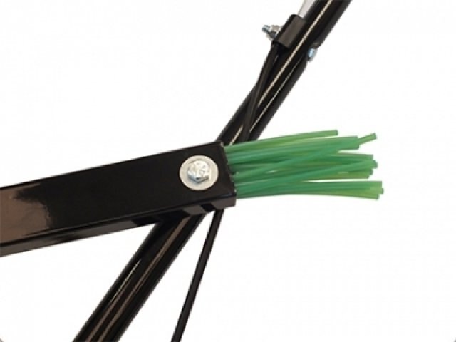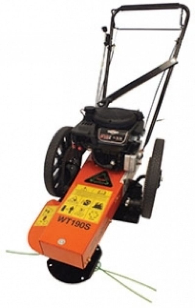 The WT190S wheeled trimmer comes standard with .155mil nylon cutting line, with specialty Triple Blade Brush Cutter and Sabre Tooth Blade kits available. The 14" dia. Sabre Tooth Blade can cut saplings and small trees up to 4” in diameter while the 14" Triple Blade Brush Cutter makes short work of heavy weeds, cattails and underbrush.