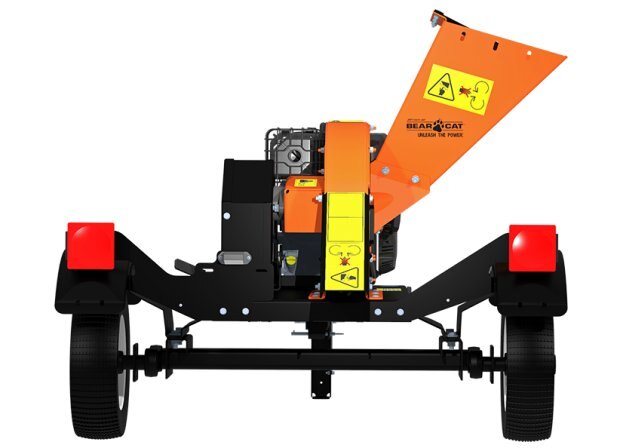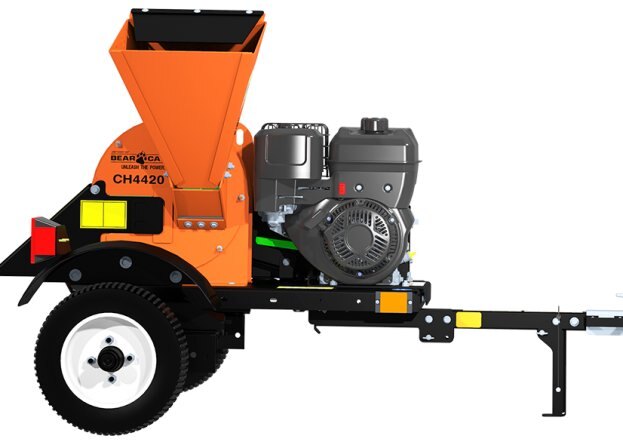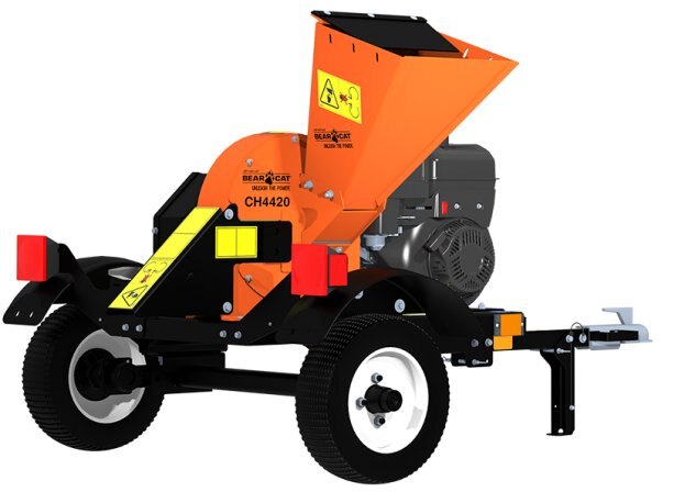 The Crary® Bear Cat® CH4420 wood chipper is powered by a 420cc Briggs & Stratton Engine. The 49 lb. rotor is equipped with two oversized, heat-treated chipping blades and rotates 3000 rpm at full throttle. The rotor is driven by a heavy-duty, double-banded belt, for maximum positive power transfer. The CH4420 wood chipper features a cantilever disc mounting design which assists in decreasing the amount of material wrap that can occur with certain stringy, sappy or wet wood types. It has a 4-sided adjustable anvil as well to ensure chipping quality and quality end product. This compact and powerful chipper is perfect for the first time chipper buyer, small acreage owner or rental application. 2″ coupler standard. CE compliant model available. |