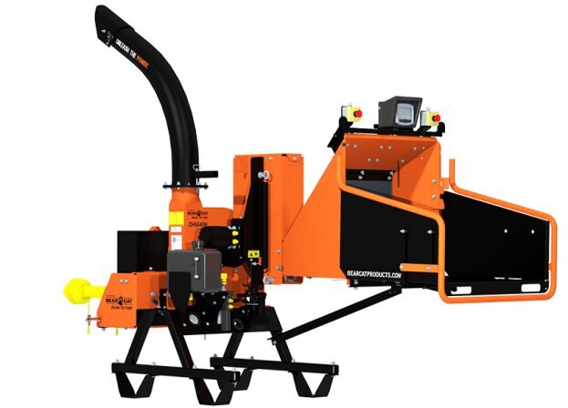 If a 5-inch PTO chipper is what you need, Crary® Bear Cat® has just the right machine for you. You choose the model based on your power requirements. The CH5540H (CE compliant model available) comes equipped with a 20″ x 1.25″ , 140 pound, dynamically balanced steel rotor with four reversible chipper blades, easy feeding with a big 28″ x 28″ feed hopper and 5.7″ x 7″ chipper throat opening that allows small side limbs, 360 degree rotating 6″ discharge chute. The CH5540H features a Digital Display Controller (DDC) hydraulic feed system with a variable speed feed roller with instant reverse. The DDC features: