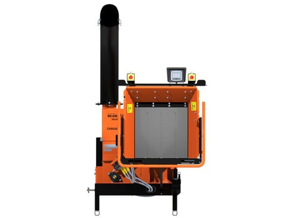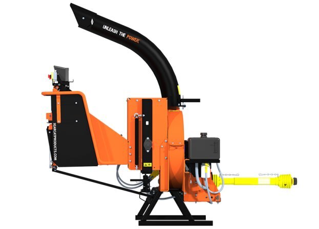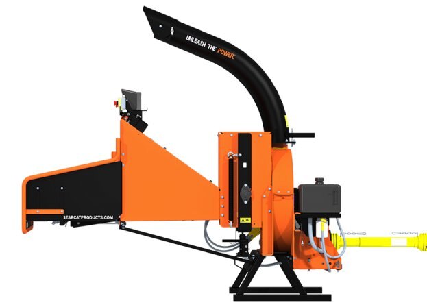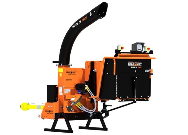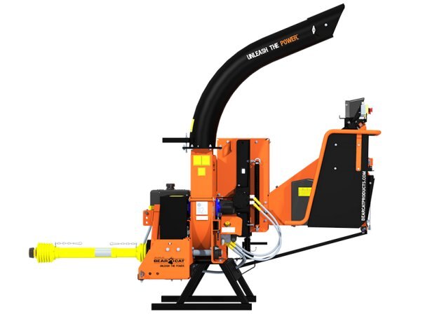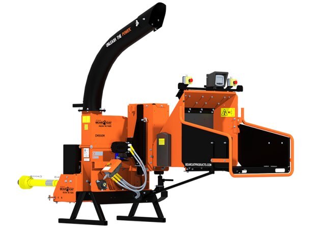 If a 9-inch PTO chipper is what you need, Crary® Bear Cat® has just the right machine for you. You choose the model based on your power requirements. Power take offs on utility tractors have become a primary source for much of the work around farms, orchards, golf courses, etc. Any place where you need to turn a pile of branches into a pile of chips. You choose – self feed or hydrostatic hydraulic feed for infinite feed settings – these chippers mount on your three point hitch and hook directly to the PTO for quick setup and power on demand. The CH9540H (CE compliant model available) comes equipped with a 30″ x 1.25″, 275 pound, dynamically balanced steel rotor with four reversible chipper blades, easy feeding with a big 31″ x 31″ feed hopper and 9″ x 9″ chipper throat opening and a 360 degree rotating discharge chute. A hydraulic jack is mounted on the hydraulic feed system for ease of maintenance. Plate steel construction means solid performance for hundreds of hours, and maintenance is enhanced by a hinged disc cover that provides wide open access to the chipper blades and disc. The CH9540H features a Digital Display Controller (DDC) hydraulic feed system with a variable speed feed roller with instant reverse. The DDC features: Movable Digital TFT screen for easy viewing, even in bright sunlight conditions