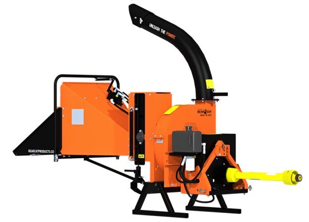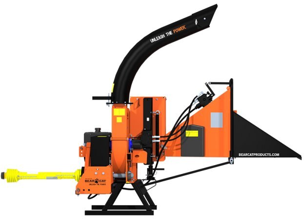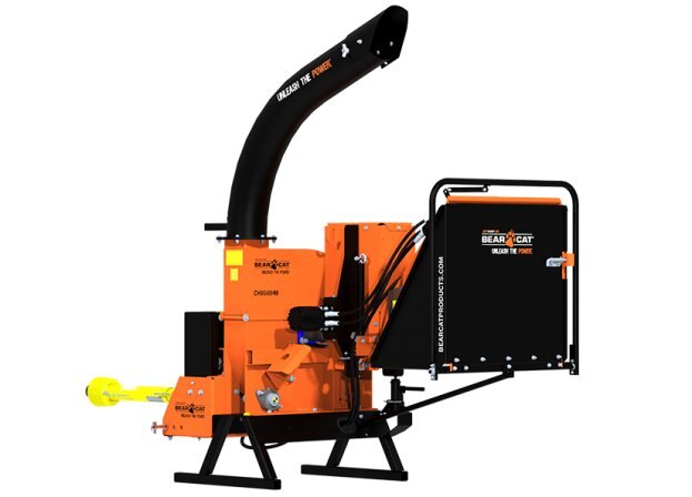 If a 9-inch PTO chipper is what you need, Crary® Bear Cat® has just the right machine for you. You choose the model based on your power requirements. Power take offs on utility tractors have become a primary source for much of the work around farms, orchards, golf courses, etc. Any place where you need to turn a pile of branches into a pile of chips. You choose – self feed or hydrostatic hydraulic feed for infinite feed settings – these chippers mount on your three point hitch and hook directly to the PTO for quick setup and power on demand. The CH9540HM comes equipped with a 30″ x 1.25″, 275 pound, dynamically balanced steel rotor with four reversible chipper blades, easy feeding with a big 31″ x 31″ feed hopper and 9″ x 9″ chipper throat opening and a 360 degree rotating discharge chute. A hydraulic jack is mounted on the hydraulic feed system for ease of maintenance. Plate steel construction means solid performance for hundreds of hours, and maintenance is enhanced by a hinged disc cover that provides wide open access to the chipper blades and disc. NOTE – For Use On Tractors with PTO Horsepower Ratings From 35 hp to 60 hp |