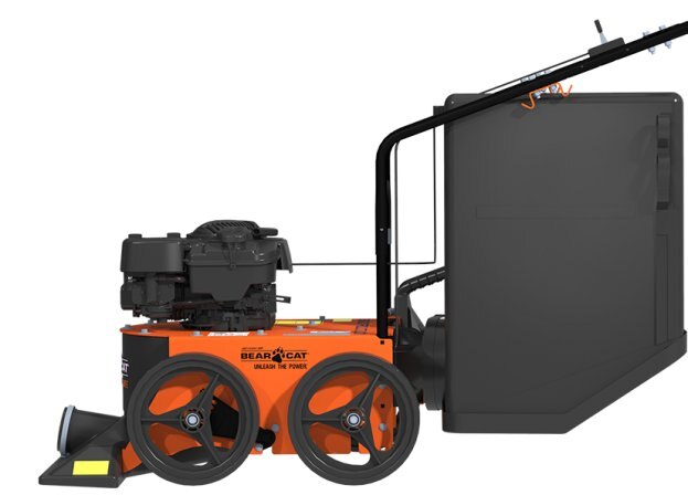 A Crary® Bear Cat® Wheeled Vacuum is a great way for homeowners, commercial crews, or municipalities to quickly and efficiently pick up leaves, grass, or other light debris. With a variety of engines available and either push or 3-speed, self-propelled drive options, there’s a Wheeled Vacuum that will fit your job. Standard features for each model include five different height settings for easy pick-up on any type of terrain, a 56-gallon capacity quick dump bag, adjustable handle bars with cushion grip, a five-blade radial fan that delivers more CFM than any other competitor vacuum and easy-to-maneuver 12″ x 2.5″ rubber tires with ball bearing hubs. A variety of options are available for each model including extra bags, a hose kit for hard-to-reach areas, pivoting casters for easy maneuvering on hard surfaces, and a nozzle wear plate. CE compliant model available. |