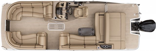 A back bolster adjusts for forward seating or a rearward lounge position. Integrated Blue Ice LED cup holder, stereo controls and perimeter lighting add the sporty and refined interior. *Stainless steel stern rail not shown.