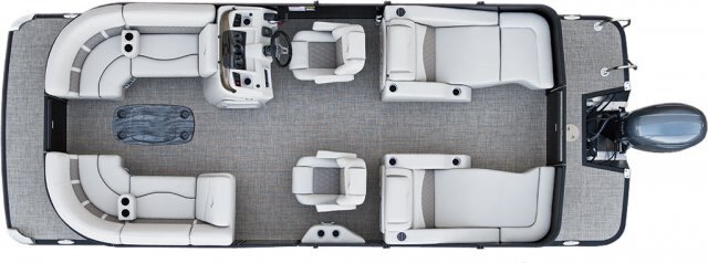 ![]() Bow seating with dual chaise lounges, portable cup holders and Graywood dinette table. Diamond pressed Pillow-top upholstery in Sandstone with Driftwood accent. |