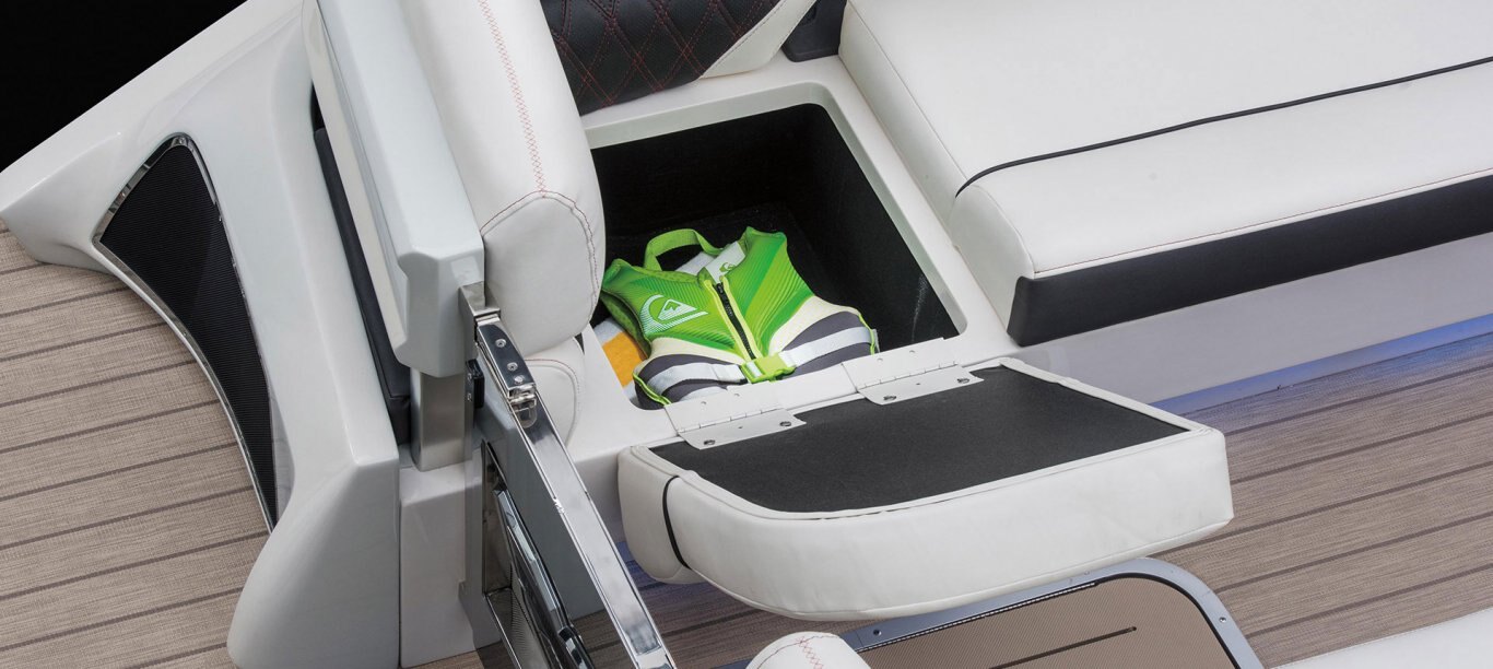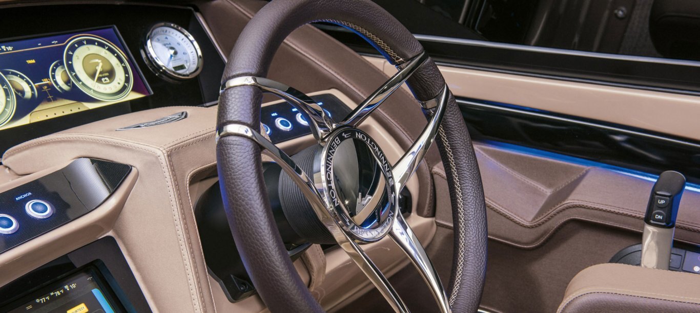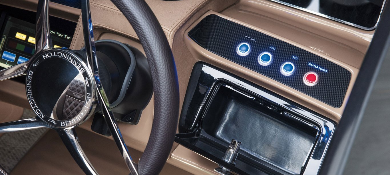 A powerful, audiophile grade system is expertly integrated and controlled through two helm-mounted touch-screens and boosted by two subwoofers for a full-range sound experience.
