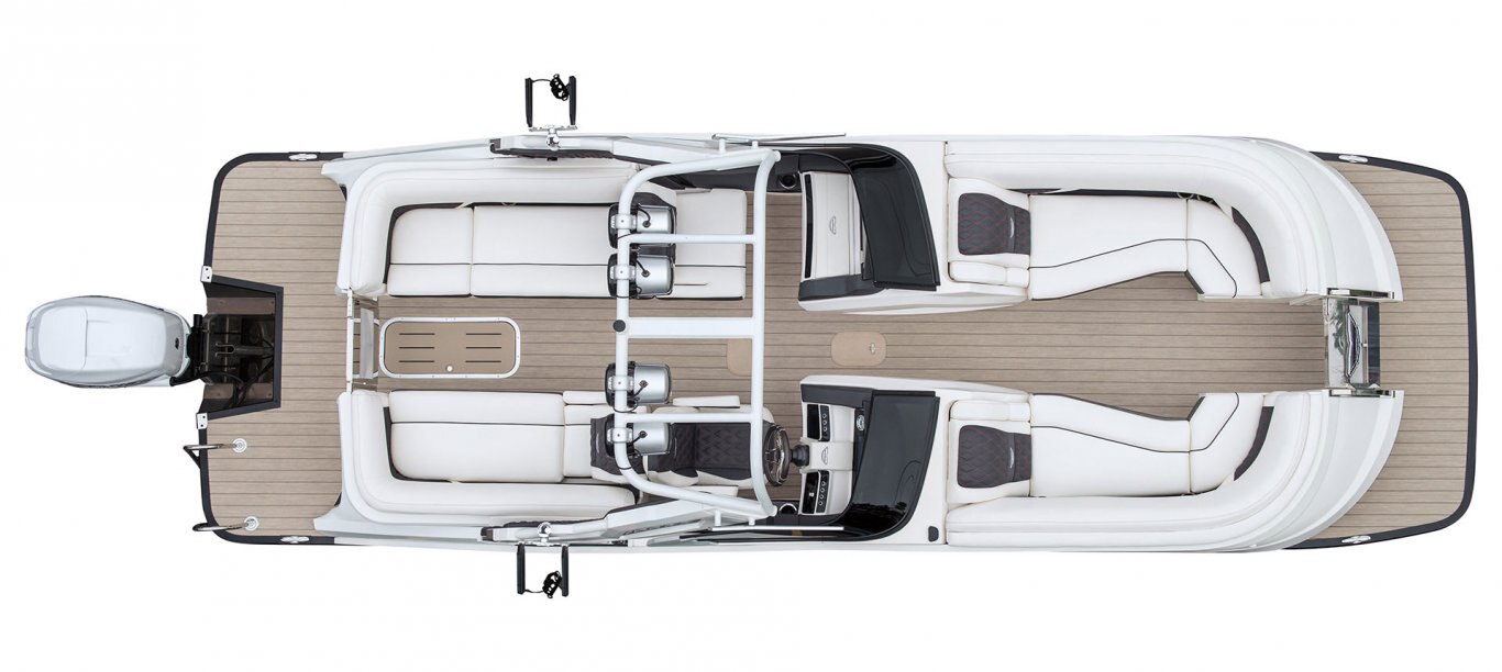 The QX Sport has a walk-though design with twin benches up front. The helms and furniture bases are color matched fiberglass maximizing storage, style, and durability. The two rear convertible benches have backs that may be flipped in two directions to allow forward facing or rear facing seats.