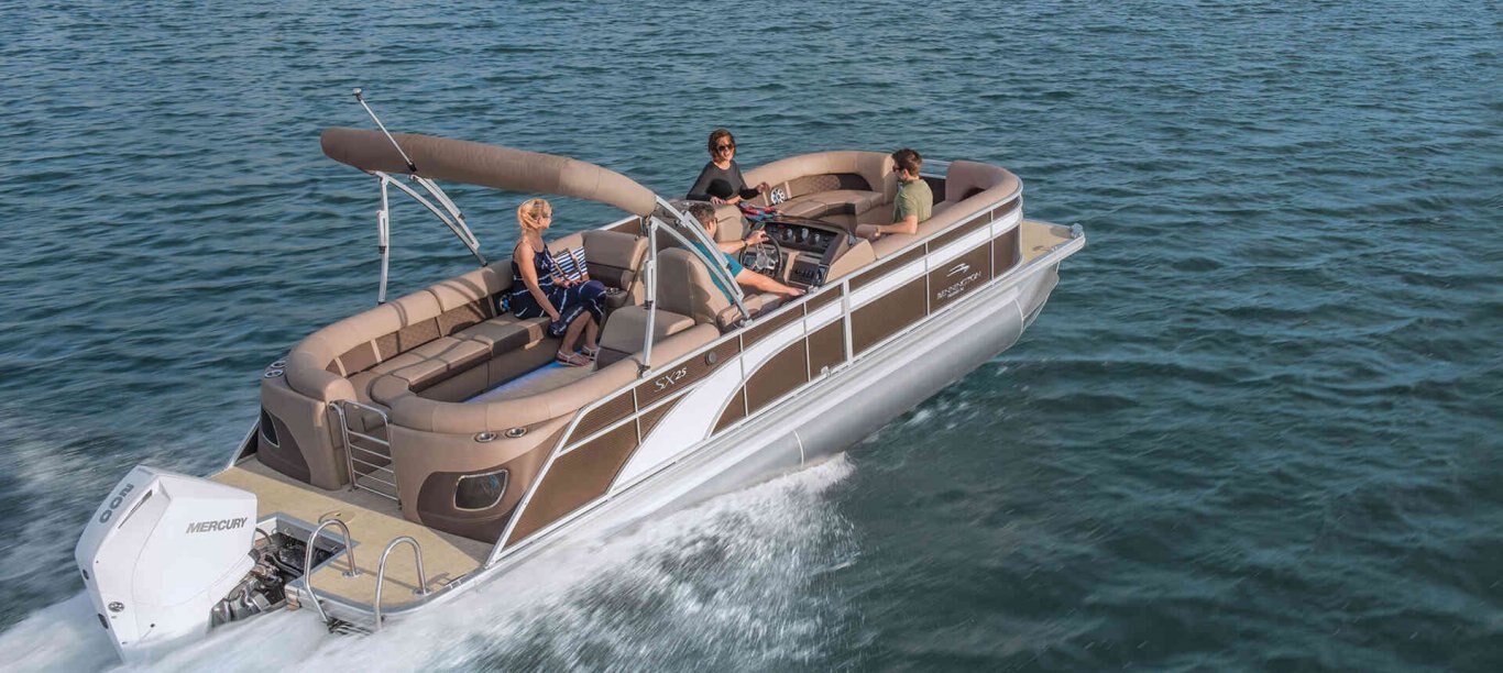 Our engineers have pioneered the design of performance pontoons, creating boats more capable with greater confidence and handling than many traditional fiberglass boats. The SX Premium offers performance options and power packages up to 250 HP.
