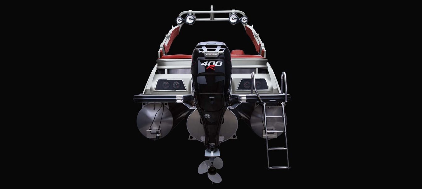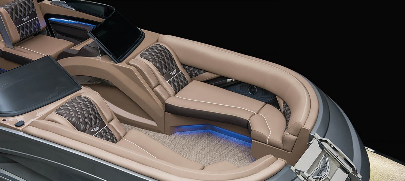 A powerful, audiophile grade system is expertly integrated and controlled through two helm-mounted touch-screens and boosted by two subwoofers for a full-range sound experience.