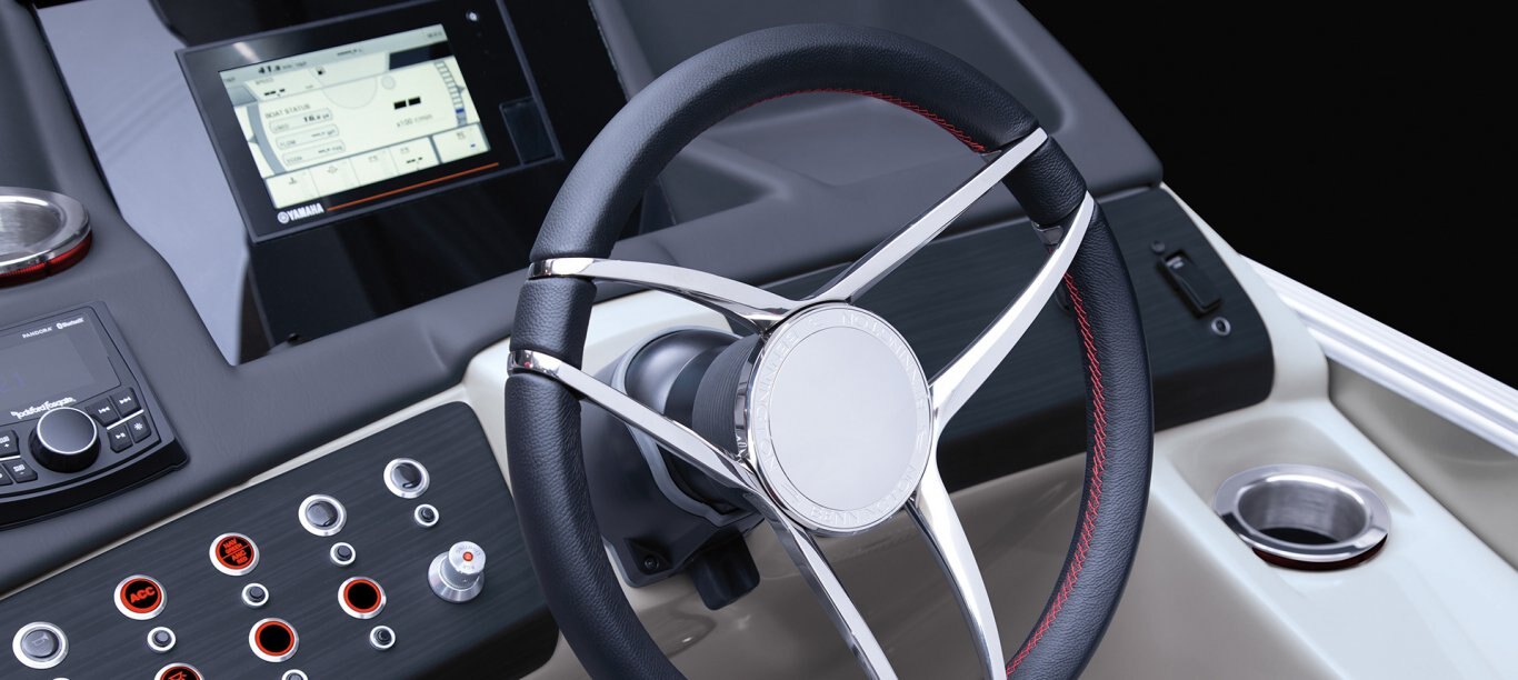 Few places provide a greater level of connectivity to the boating experience than the helm, and the Q Model accentuates this interaction with a Corvina leather-wrapped sport wheel