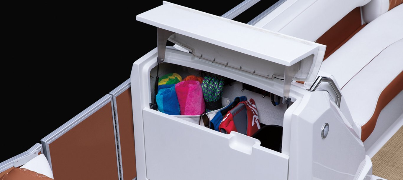 The all-new V-Hull™ performance package was designed and engineered alongside the Bowrider, giving you more in-floor storage and the performance you expect from a Bennington as standard equipment.