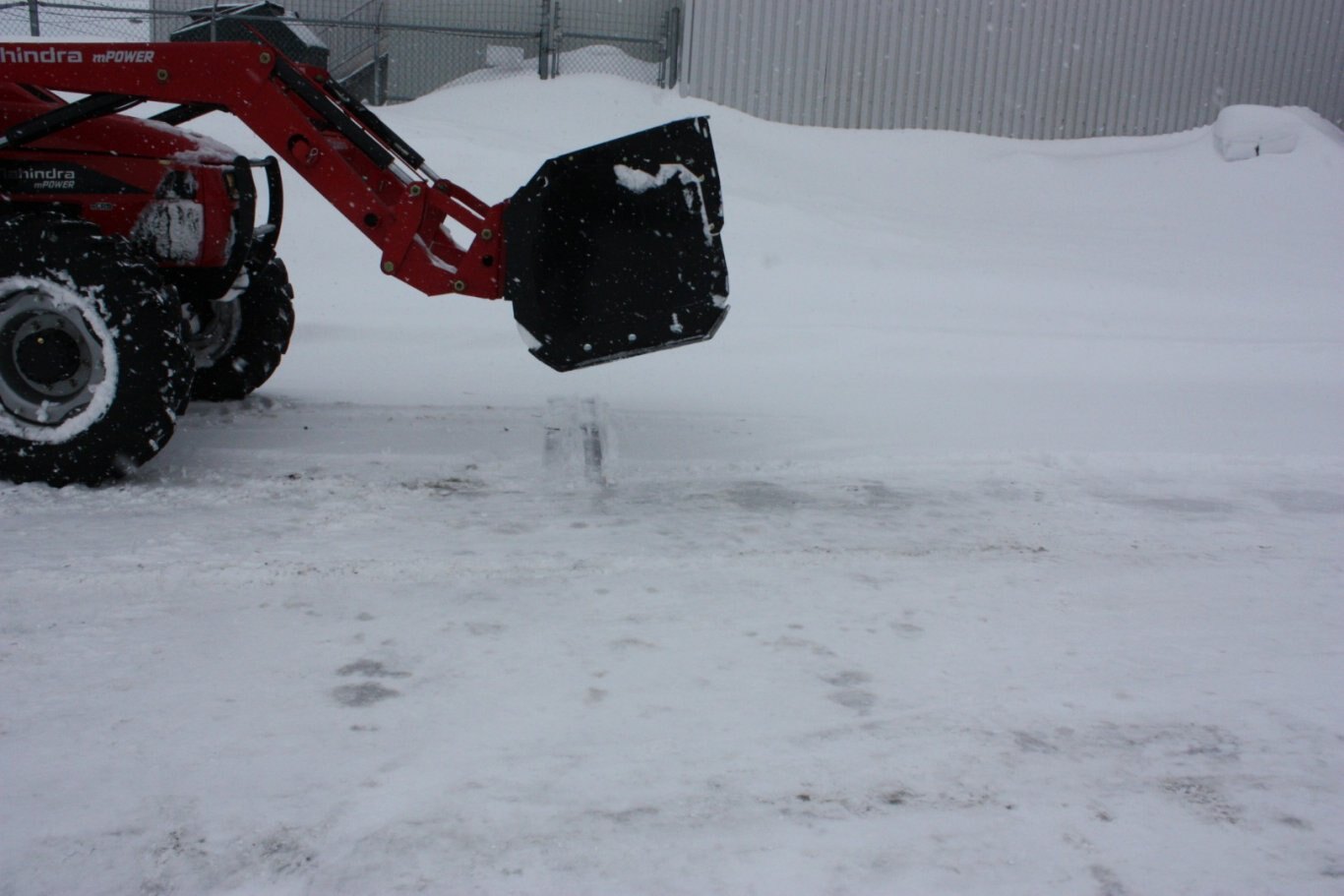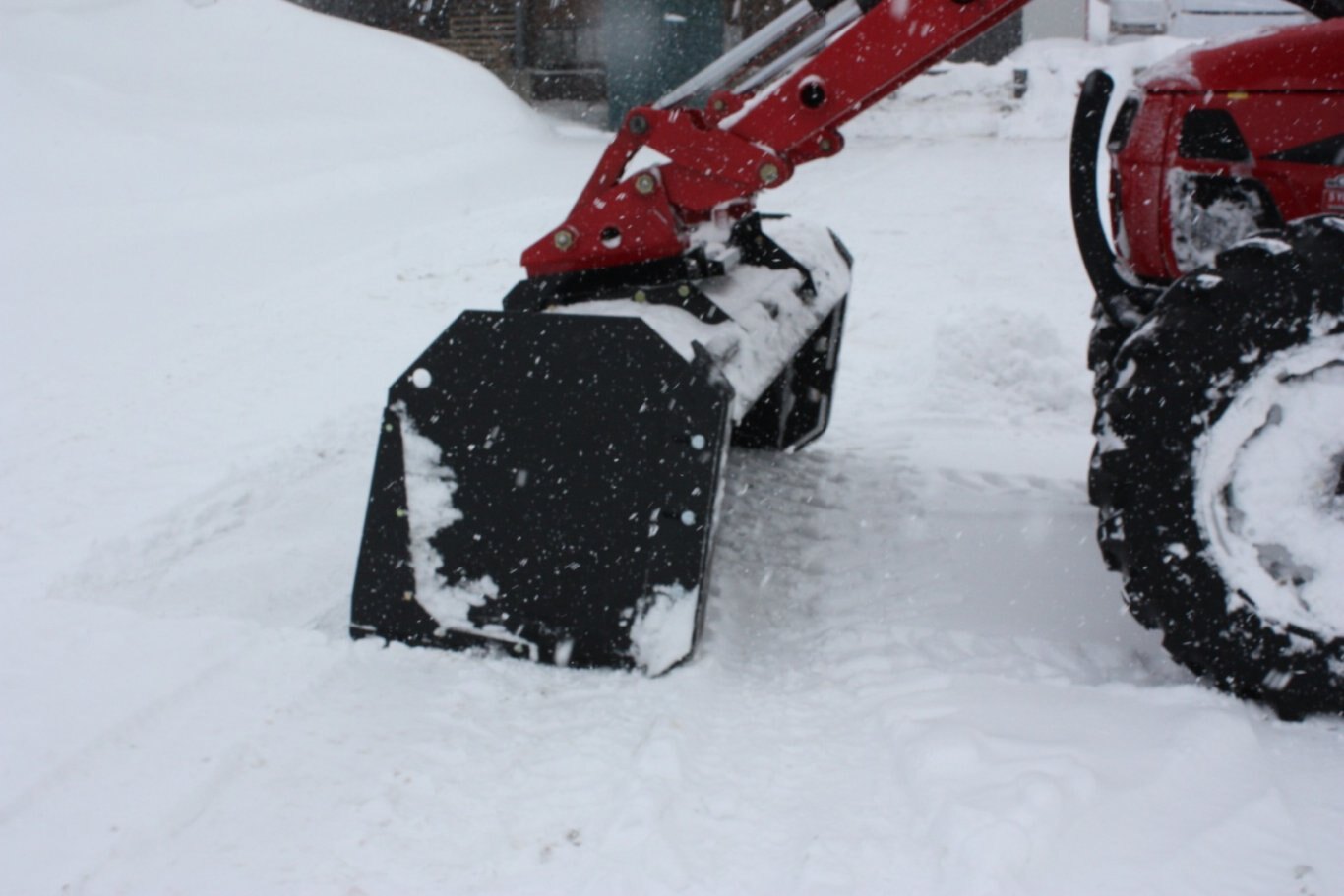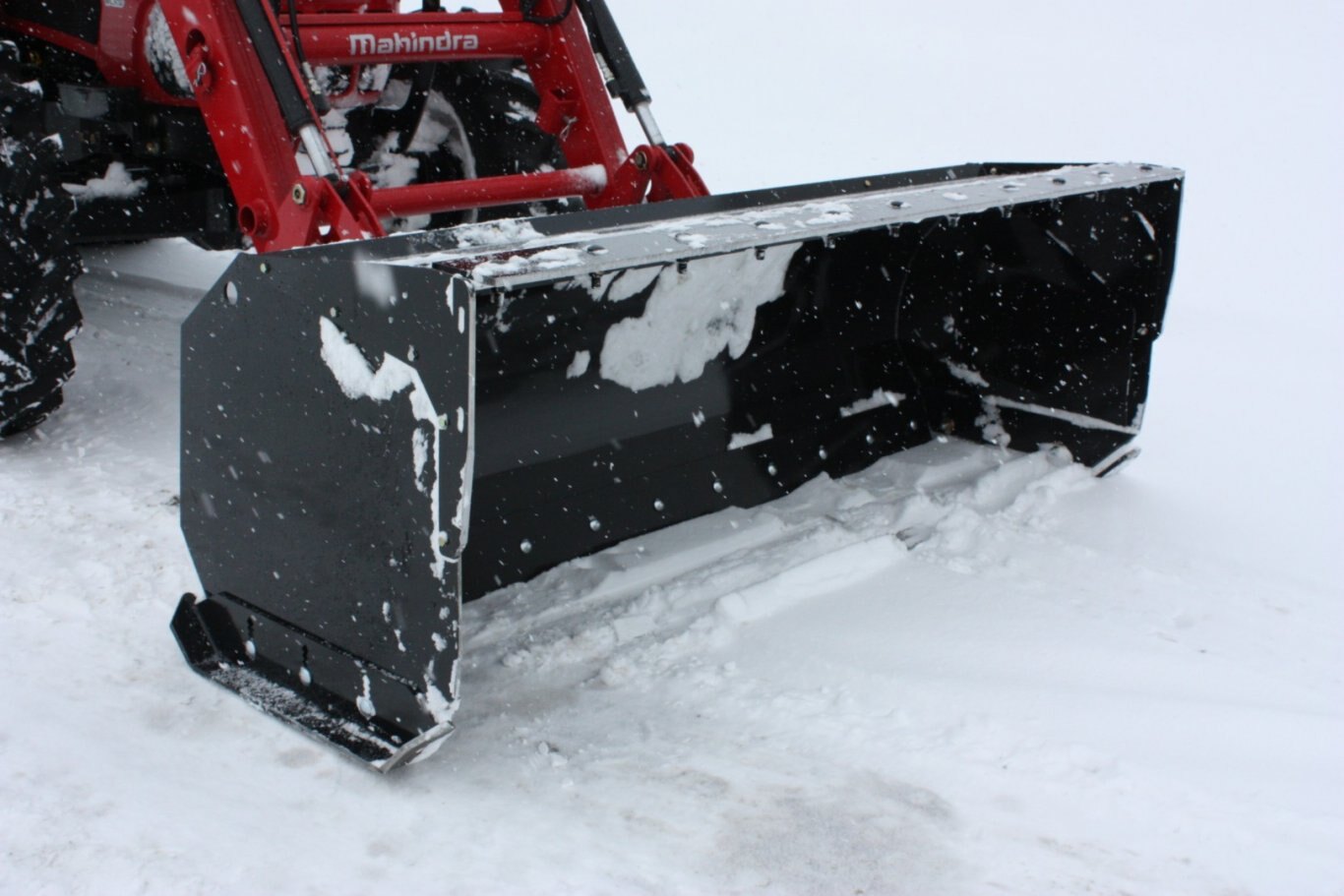 This new design allows for quick installation. Simply connect the quick attach to the snow push and off you go. If you own a compact tractor with a front loader this snow push will be perfect for you.