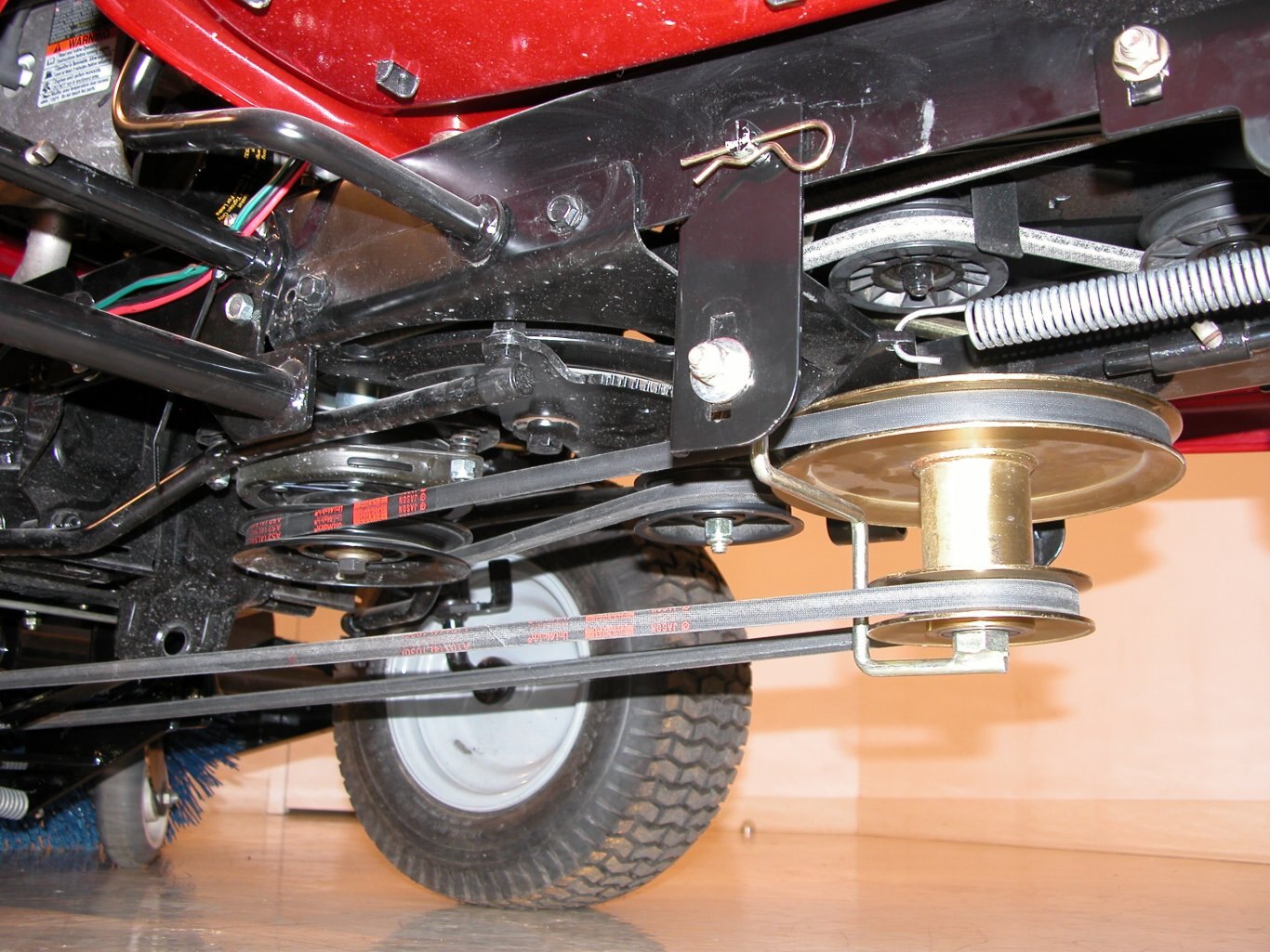 After the initial set up of the subframe it can stay on your tractor all year long without interfering with your mower deck