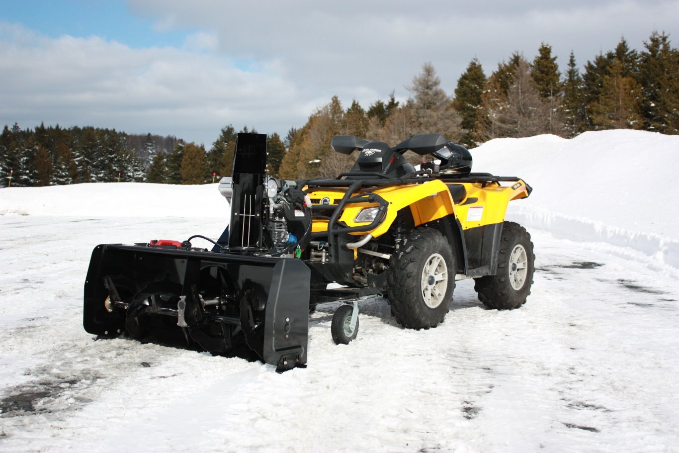 Will throw snow above the snow bank with ease! This ATV snowblower is equipped with the engine of your choice between a 20HP Honda and 14HP Kohler it also comes complete with the electric chute and rotation kit that brings all the controls to your fingertips. Universal mount on most major brands of ATV in less than 5 minutes.