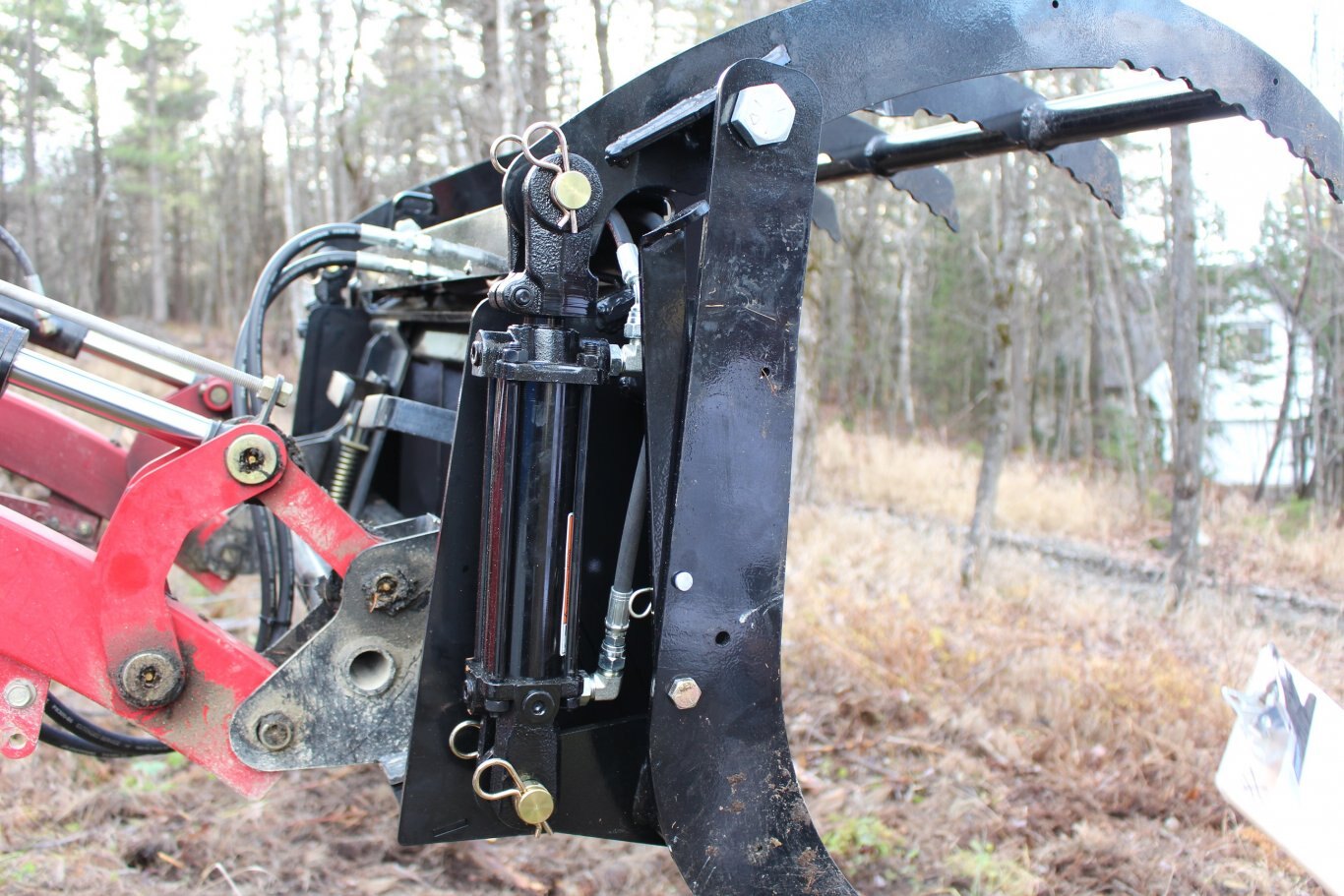 This claw grapple will fit onto all tractors equipped with a "skid steer" style attach with a maximum of 30 engine HP , with 3rd function hydraulic valve and a weight of maximum 3000 lbs along with a hydraulic system of up to 2400 psi.