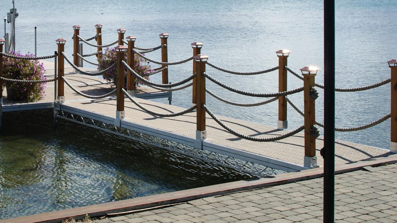 The perfect junction between solid ground and your docks, our bridge decks can be installed with ascending or descending slope to allow a safe and simple access to your docks. For additional safety and an amazing look, add an aluminium or rope ramp to your bridge deck.