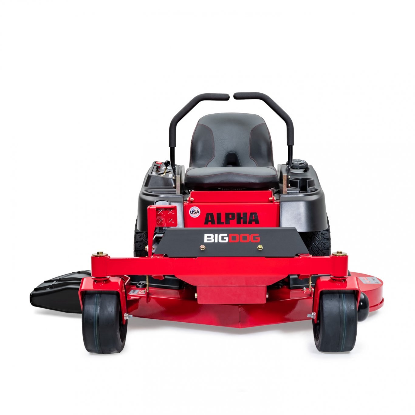 Easy, hands-free deck height adjustment.Big Dog Alpha 36