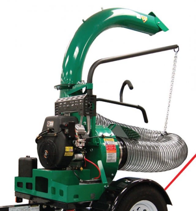 When commercial productivity counts, these units are our most popular contractor and municipal machines. They respectively feature a 25 HP or 35 HP V-Twin engine coupled to our largest 18” or 20”, 6-blade, armor plated impeller with 18 cutting points and dual shredding Piranha™ technology for up to 12:1 reduction and 5,050 cfm of suction power. For durability, the units also feature a convenient replaceable poly liner in the housing. A large 12” x 10’ clear poly helical hose on the 25 HP and a 14” x 10’ hose on the 35 HP is ideal for taking huge bites out of any debris pile and the exhaust features a no tool, no thread 360 degree unique rotational exhaust that is hand adjustable. The optional highway class trailer kit (pictured) is pre-wired for easy towing and storage, and the optional exhaust deflector kit (pictured) deflects debris for most efficient loading. Don’t let your crew settle for anything less!