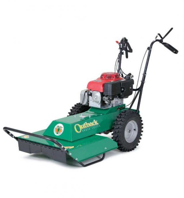 A proven performer since 1995, the Outback® BC24 is a 24” commercial duty walk behind brush hog cuts down dense brush up to 6’ high, grass and weeds over 8’ tall, and saplings up to 2.0” diameter. It’s designed to take the abuse of hitting all those items hidden in the brush such as rocks, stumps, fence posts and tires. The Honda engine version handles up to 20-degree slopes.