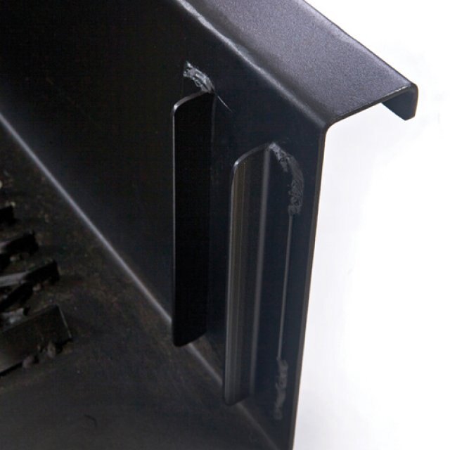 Grooved Slots Trailer has grooved slots on its backside allowing for a 2" x 8" or 2" x 10" board to be inserted, adding safety and equipment protection when transporting. |