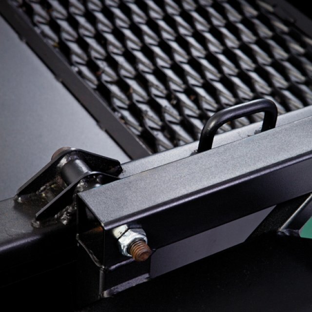 Skid Plate Decking Trailer bed has grated decking for safe loading and unloading of equipment. |