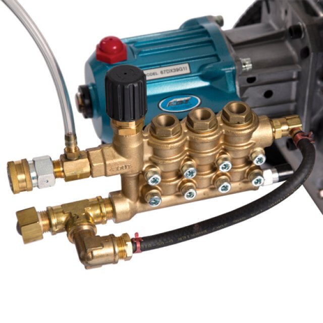 When cleanup power counts, Billy Goat's new PW40S0H 4,000 PSI pressure washer delivers cleaning power for every task, large and small alike. From decks and driveways to siding, garage floors and equipment, blast away mold, mildew, dirt and grime to restore surfaces to like-new condition in a fraction of the time it would take with an ordinary garden hose. The unit has a 4 gal. / min. capacity and the high pressure CAT Pumps™ triplex pump is powered by a commercial Honda GX390 cc engine with low oil protection. The heavy-duty stainles steel frame resists rust and corrosion and rubber isolators help prolong machine life. The PW40S0H is built to perform at high levels day in and day out!