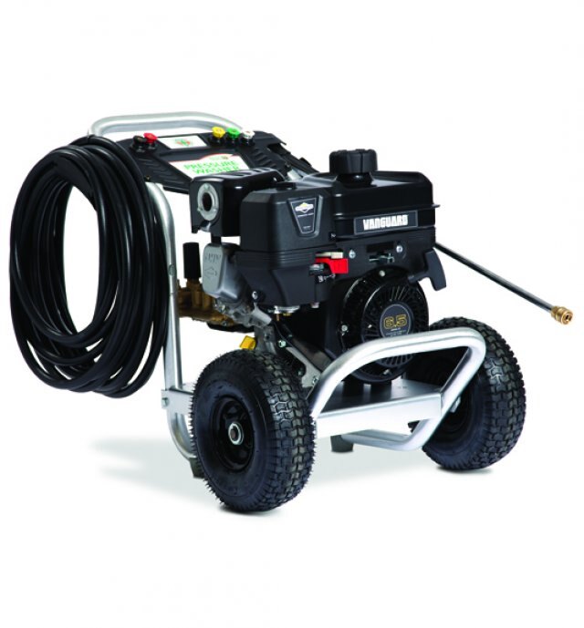 Billy Goat's new PW30A0V 3,000 PSI pressure washer is durably built for the rigorous demands of any job, any site. Its light weight corrosion resistent aluminum frame offers easy maneuvering. The Annovi Reverberi™ triplex pump is powered by a commercial Vanguard™ 205 cc engine for lasting performance on any job site. The unit has a 3 gal. / min. capacity and includes five onboard quick connect nozzles for 0, 15, 25, 40-degrees and detergent.