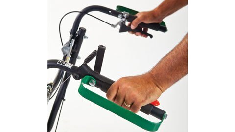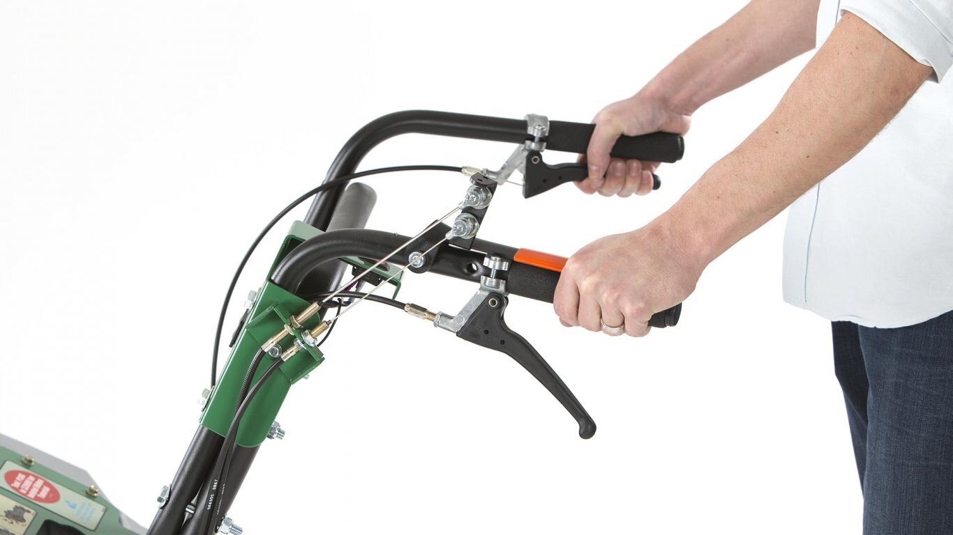 Feature variable speed self-propelled rear wheel drive and front casters allowing speed to be feathered with fingertip control. Reduces fatigue, increases productivity and provides enhanced traction while aerating on hills. Reverse feature (with tines up) for added maneuverability and ease of loading/unloading.