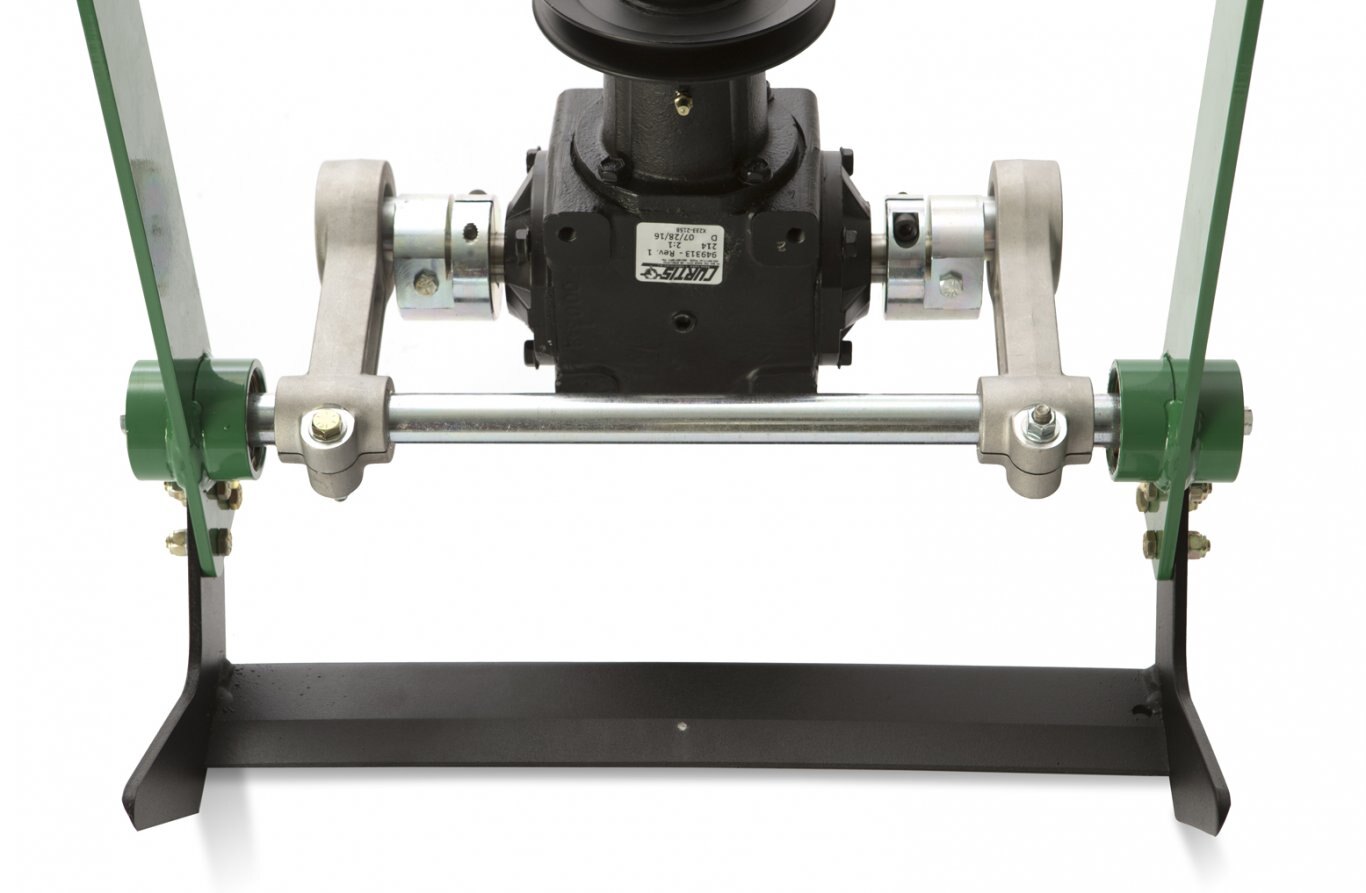 DURABLE CUT SYSTEM Features a rugged cast iron gear box, spiral gears and thick seals. Sealed bearings, one-inch plated lateral stability bar, large aluminum dog bones and tight eccentric placement adds strength and dependability. Laser clad cutting blade for precision cut and up to 3x blade life. |