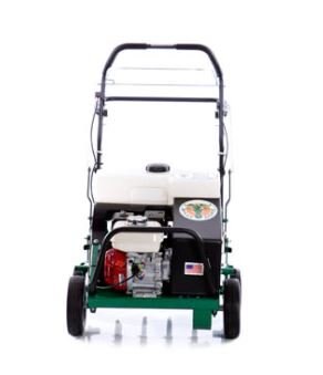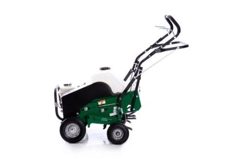 Additionally, the AE401H and the AE403V also eliminates bulky steel weights, in favor of a simple to use water weight positioned directly over the tines for better aeration depth (full tank = 50 lbs.). The unit features the industry’s softest tine engagement and exclusive Lift N Lock™ disengagement for best in class comfort and productivity. After use and during transport, tilt up serviceability, removable tine stars, and Fold-n-Go™ handles, and easy adjust drive chains make service and transport convenient and simple.