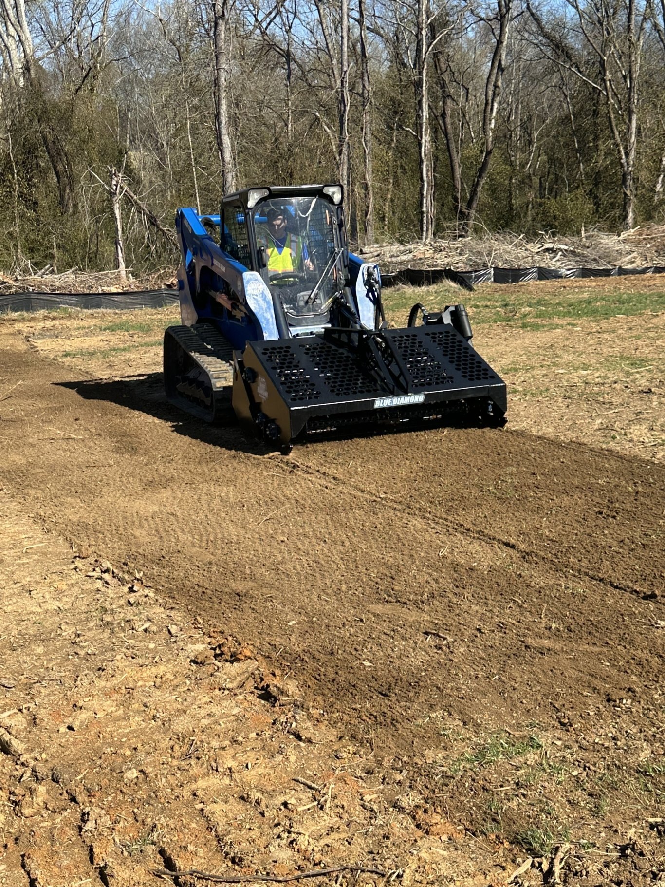 The Blue Diamond® Hydraulic Rock Rake is great for removing rocks and unwanted debris with your skid steer or track loader. The hydraulic bucket collects debris as small as 3/4 of an inch and leaves a clean, level surface. Save labor and time on your next landscaping job with the hydraulic rock rake.