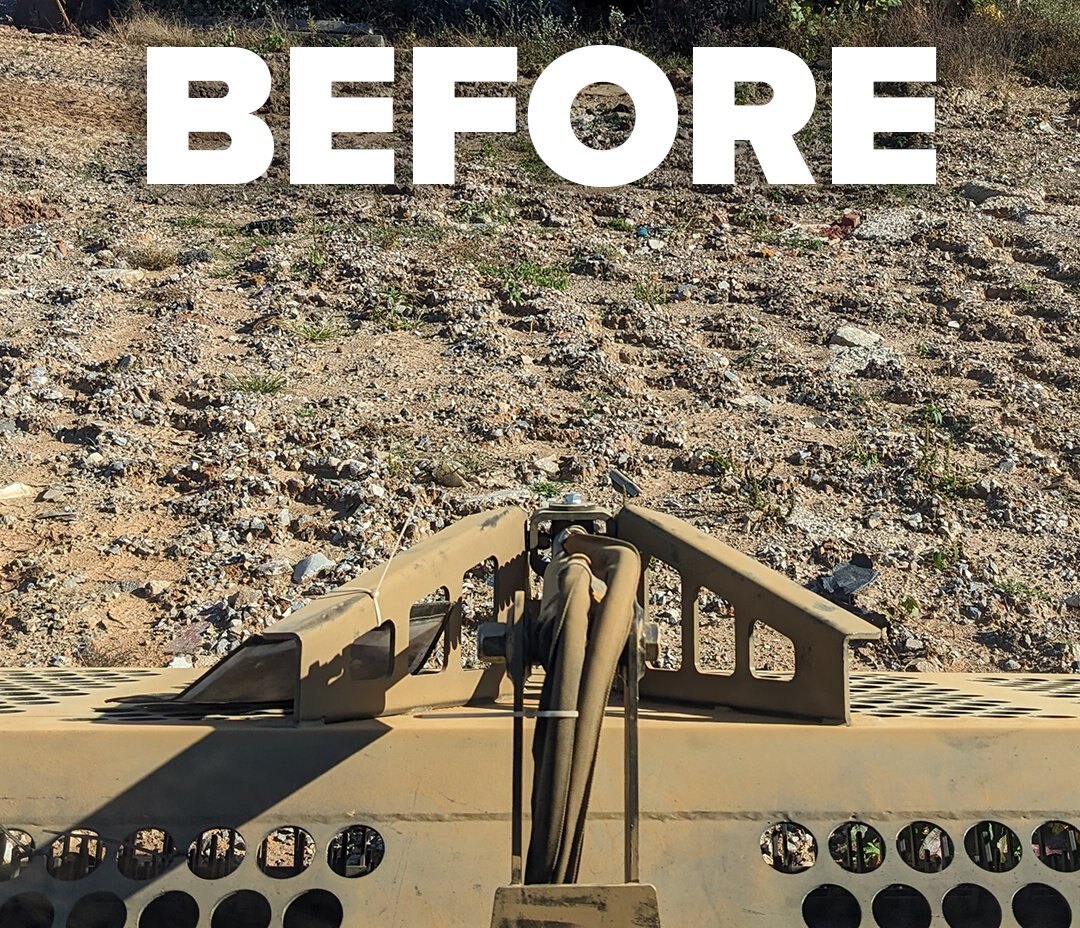 68” working width, 79" overall width 13 - 23 GPM recommended flow Built-in hydraulic protection to prevent motor damage Heavy duty hood reinforcement to protect against front impacts Hydraulically operated top cover allows easy debris transport and dumping Adjustable skid shoes to control working depth 12 replaceable bolt-on rake bars with AR400 hardened steel teeth Bi-directional operation No electrical connections required Integrated steps for safe cab access Universal skid steer mount