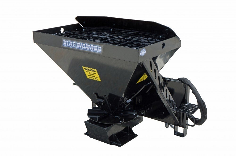 The Blue Diamond® Heavy Duty Material Spreader is the most efficient way to spread material! Simply use the hopper like a bucket to scoop your material and then turn on your skid steer’s hydraulics to spread up to 30′ wide.